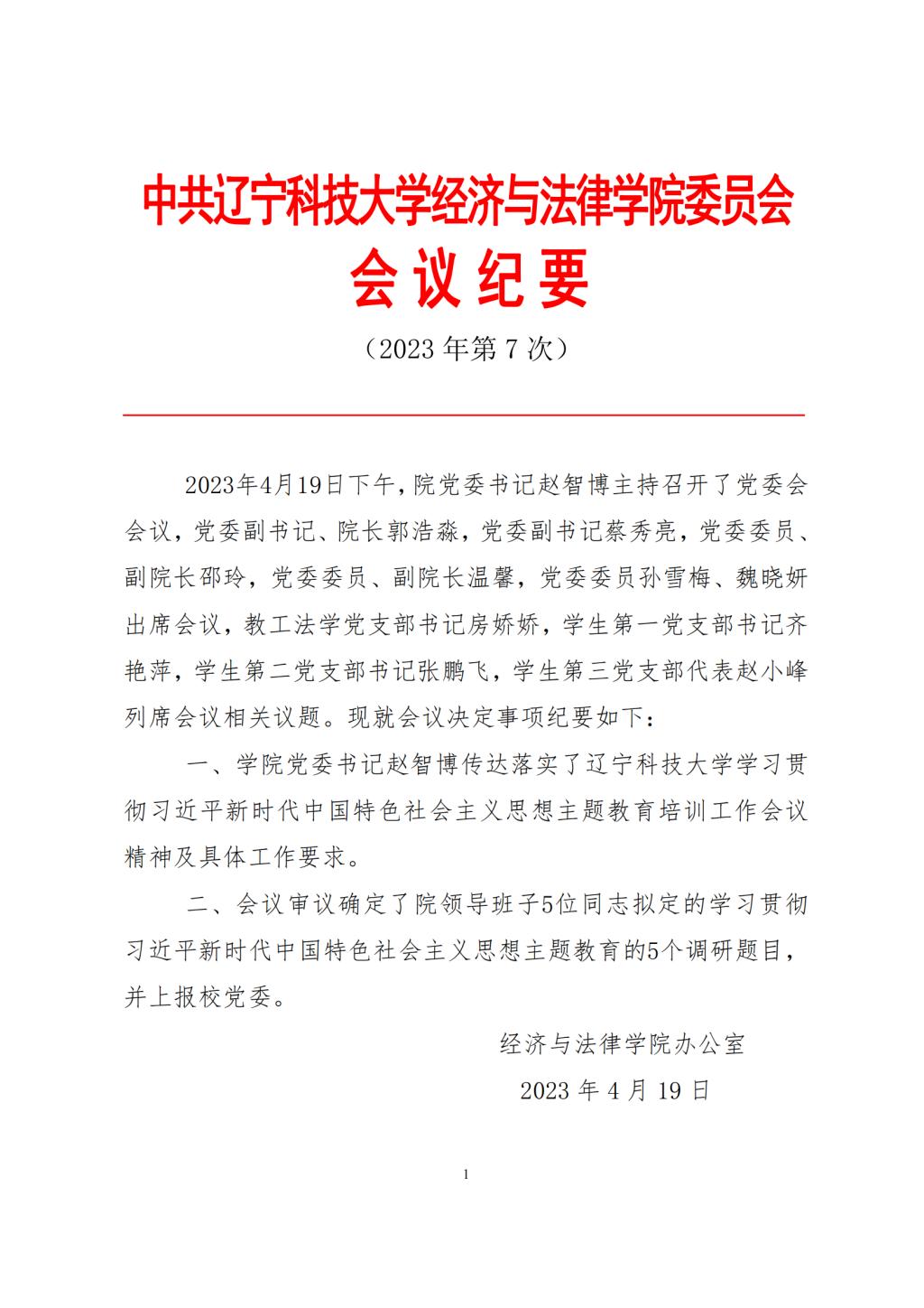 中共开元平台经济与法律学院委员会会议纪要(2023年第7次)