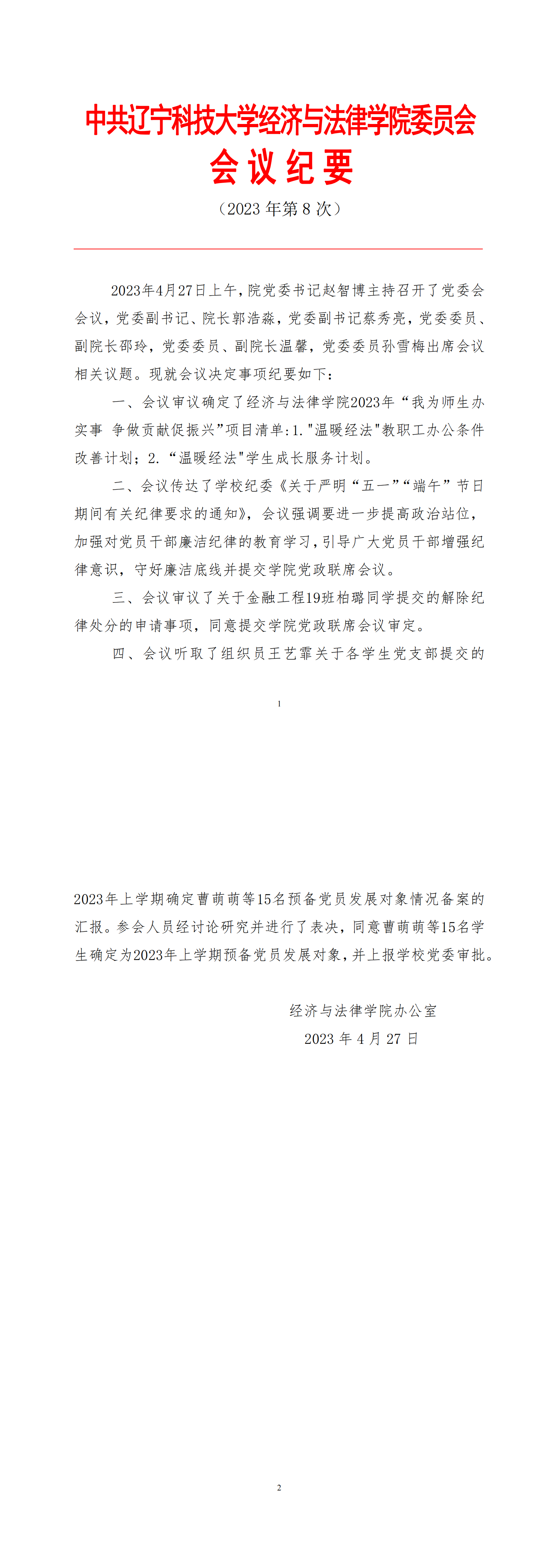 中共开元平台经济与法律学院委员会会议纪要(2023年第8次)