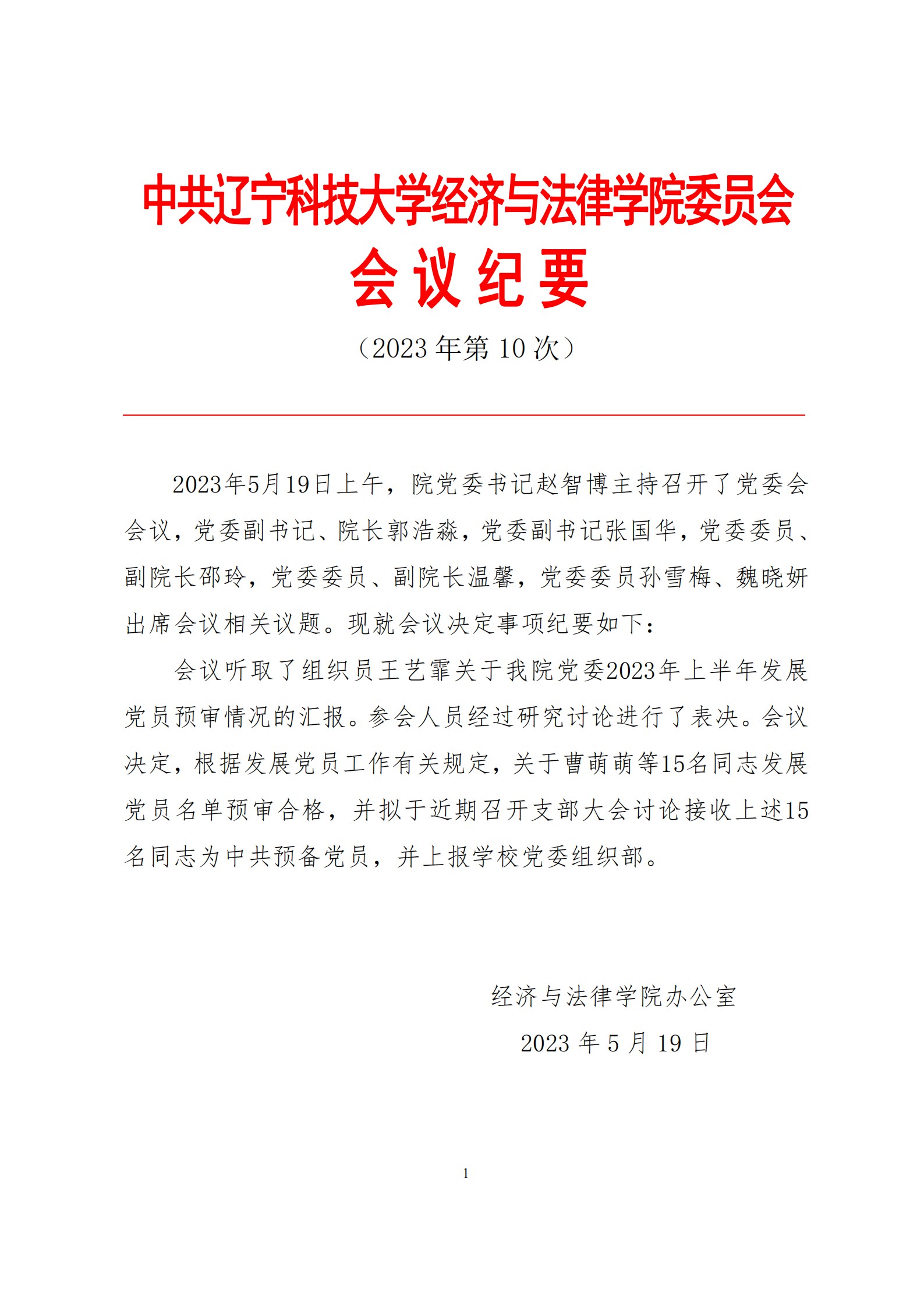 中共开元平台经济与法律学院委员会会议纪要(2023年第10次)