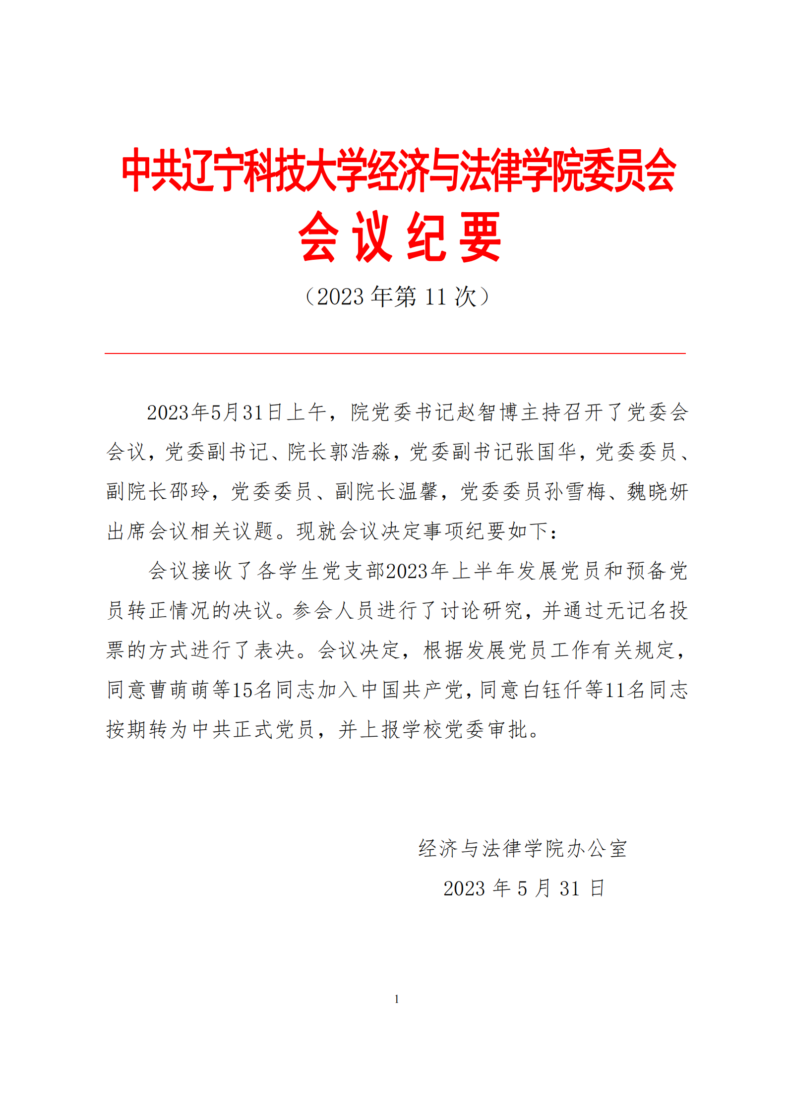 中共开元平台经济与法律学院委员会会议纪要(2023年第11次)