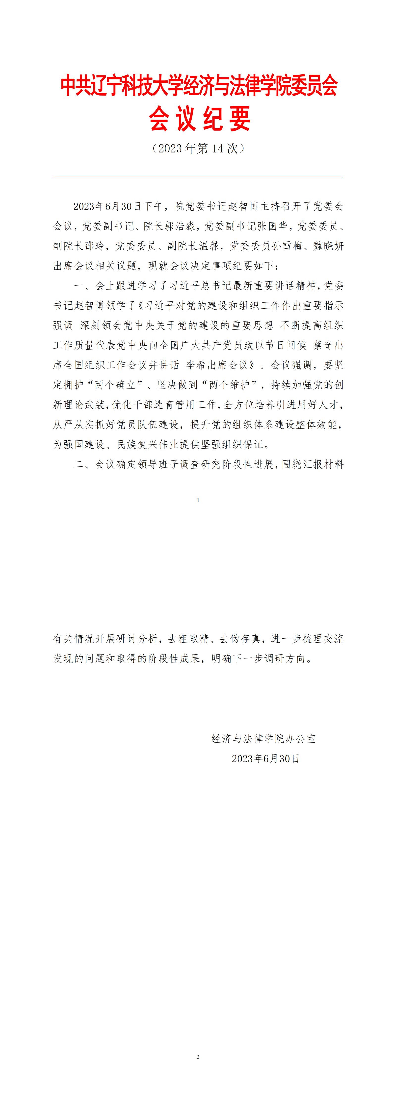 中共开元平台经济与法律学院委员会会议纪要(2023年第14次)