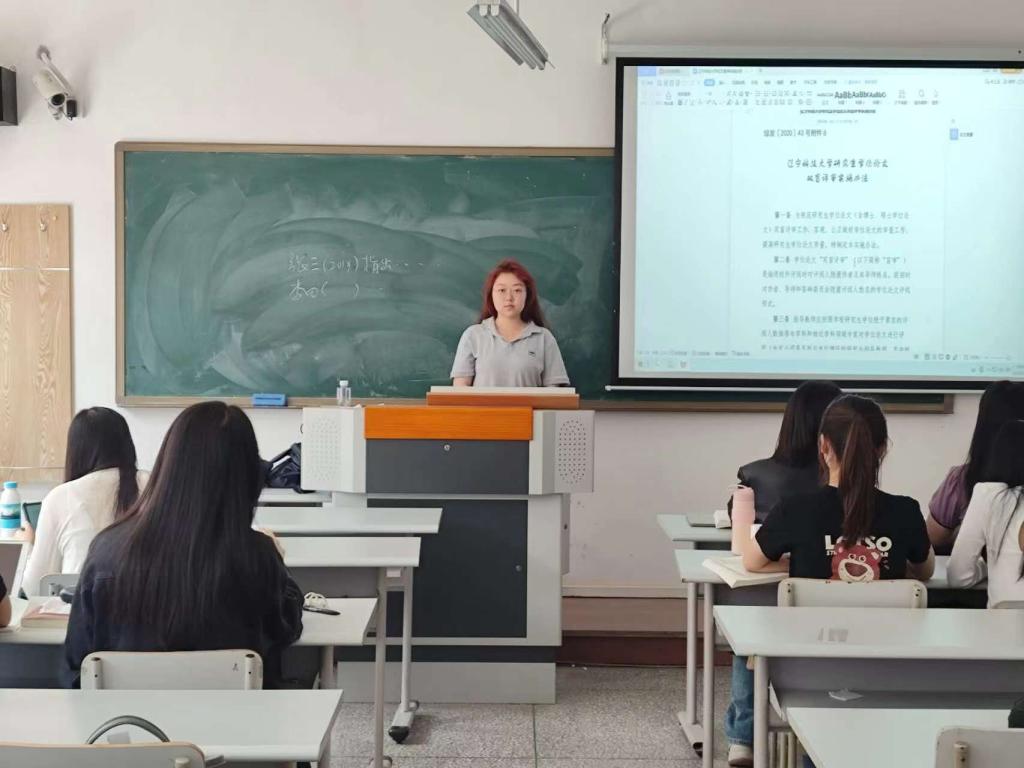 会上,张文婕带领同学们详细解读了研究生院下发的《开元平台研究生学位论文质量管理办法》《开元平台研究生学位论文双盲评审实施办法》《开元平台学术道德规范建设与管理办法》等一系列文件,旨在提醒2022级研究生在论文撰写过程中遵循学术规范,确保论文质量和学术诚信。张文婕指出,盲审是一种公正、客观的评价方式,能够有效减少评审中的主观因素,提高论文评价的科学性和公正性,她提醒同学们在撰写论文时要保持良好的学术操守,杜绝抄袭或数据造假等学术不端行为。