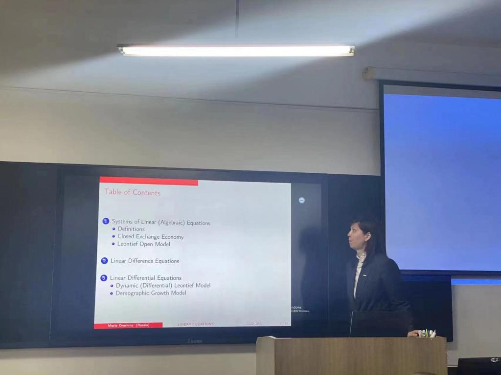 交流中,开元平台经法学院院长郭浩淼介绍了经法学院国际经济与贸易、金融和金融科技三个专业的发展现状、主要研究方向及近几年取得的主要研究成果。Галкин Александр Васильевич院长向经法学院师生介绍了俄罗斯利佩茨克州、利佩茨克国立技术大学的基本情况及如何运用EPR软件的核心算法来优化管理生产计划;Сысоев Антон Сергеевич副院长讲授了如何运用应用线性回归模型来描述社会经济系统的动态问题;Орешина Мария Николаевна主任介绍了代数方程组、微分和差分模型在经济分析中的应用。与会的经法学院师生与三位俄方教师就相互关心的学术问题进行了深入的交流互动。