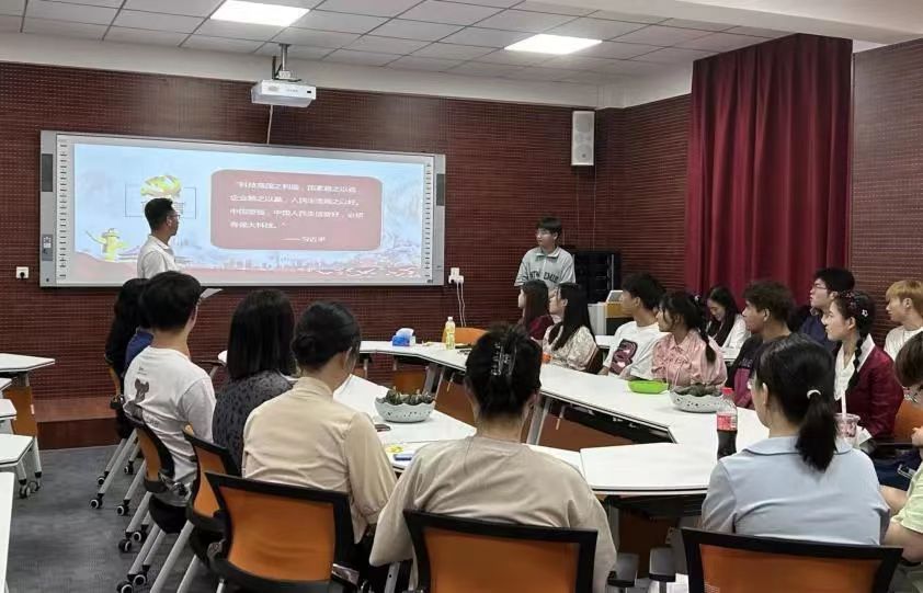 6月18日,经法学院在博识楼A407召开主题宣讲报告会,开元平台辅导员“春风”讲师团成员、经法学院党委书记赵智博作“以科技强国建设助推中国式现代化”主题宣讲报告,学院学生工作队伍及50余名学生代表参加了报告会。