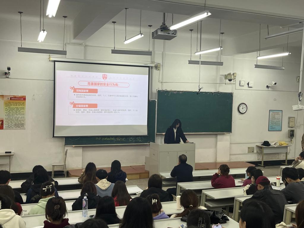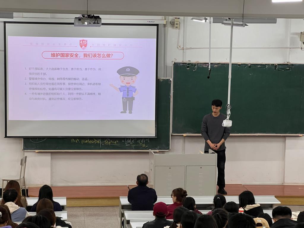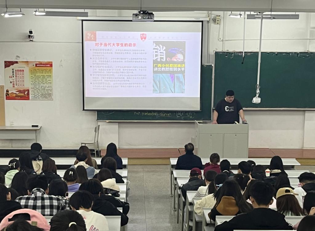 会上,辅导员以“总体国家安全观·创新引领10周年”为主题,从什么是国家安全、当前国际国内形势,危害国家安全罪相关法条内容、国家安全与青年使命担当四方面进行了深入讲解,并结合泄密我国稻种及制种技术危害国家安全等经典案例以及大学生因国家安全意识低成为犯罪目标等案例,与学生深入探讨了维护国家安全的必要性与深远意义。辅导员强调,国家安全是安邦定国的重要基石,是人民安居乐业的保证,维护国家安全是全国各族人民根本利益所在;希望全体学生都能将总体国家安全观念内化于心、外化于行,不断提高保密意识、防范意识,支持配合国家安全工作,自觉履行维护国家安全、保守国家秘密的义务,在思想上形成共识,在行动上达到自觉,为国家的安定和人民的幸福贡献青春力量。