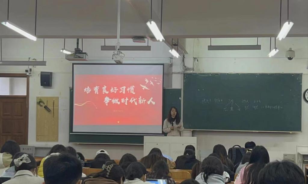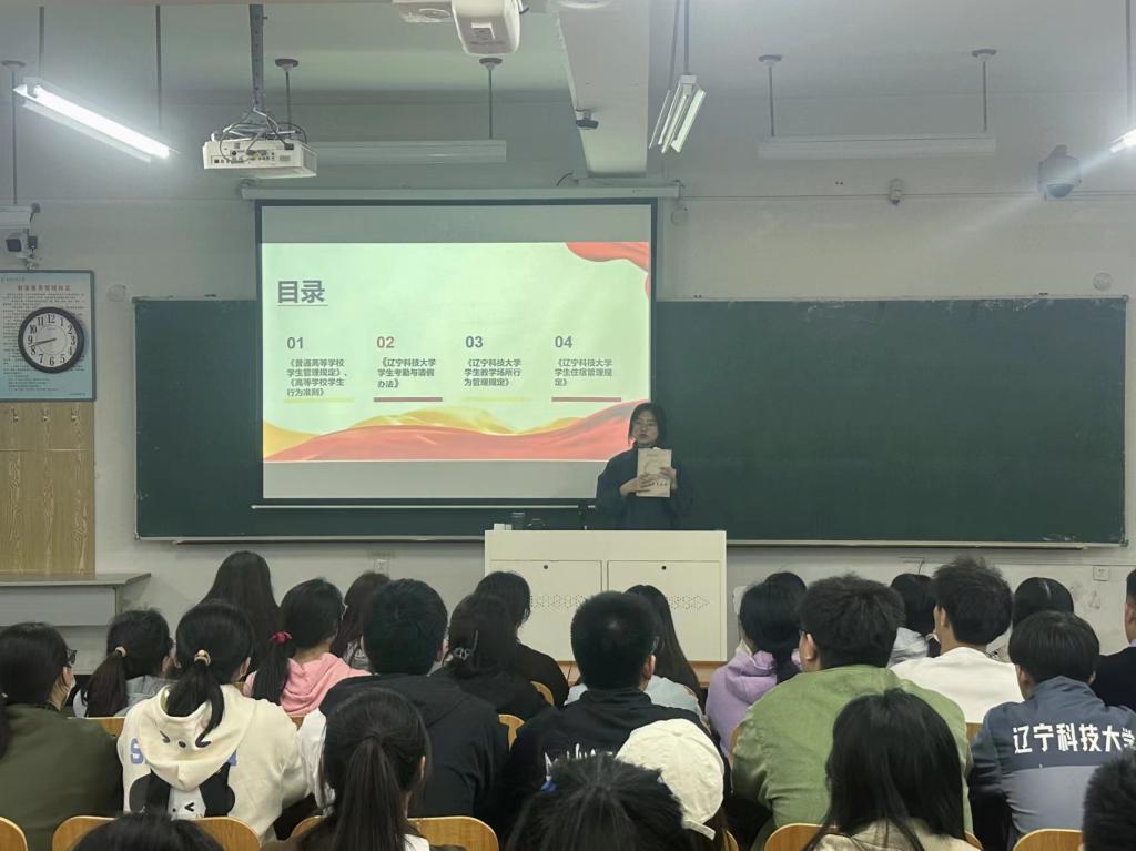辅导员以“培育良好习惯,争做时代新人”为主题,带领学生深入学习了《普通高等学校学生管理规定》等管理办法,重点讲解了请假、住宿、奖惩机制等方面的内容。辅导员希望同学们能够规范文明行为,明确学习目标,自觉养成良好学习和生活习惯。最后,辅导员对同学们进行安全教育,确保学生在参与即将到来的运动会和享受五一假期的同时,保持高度的安全意识、提高自我保护能力。