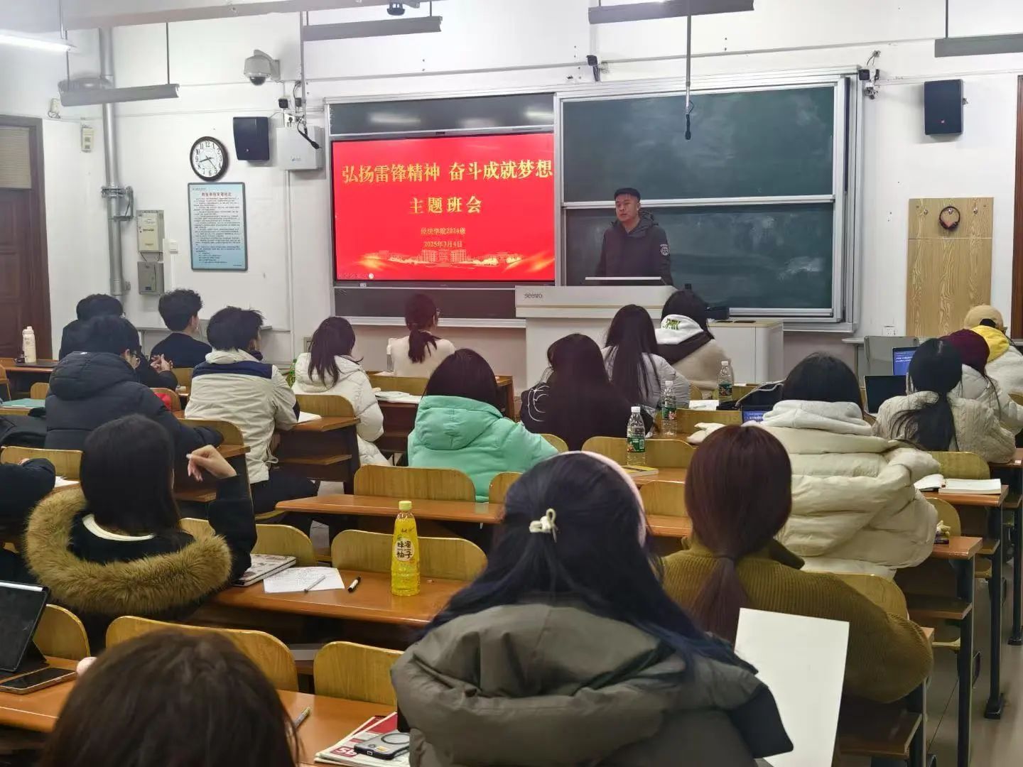 在“弘扬雷锋精神,奋斗成就梦想”主题环节,辅导员带领同学们围绕如何弘扬雷锋精神展开热烈讨论,通过分享雷锋事迹与新时代雷锋精神的践行案例,引导学生深刻领会其内涵,激励大家在学习生活中积极践行,为民族复兴贡献青春力量。职业生涯规划教育同样备受关注。辅导员帮助学生树立正确的成才观和就业观,深入分析当前就业环境,指导学生合理调整职业发展目标,助力提升就业竞争力。