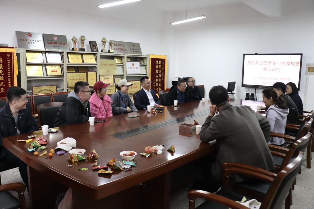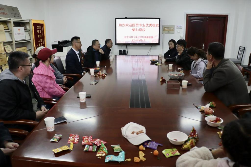 4月6日,经法学院于博识楼A305举办国贸校友返校交流活动,学院党委书记赵智博、院长郭浩淼、党委副书记张国华、国贸系教师贾丹和8名校友参加了本次活动。