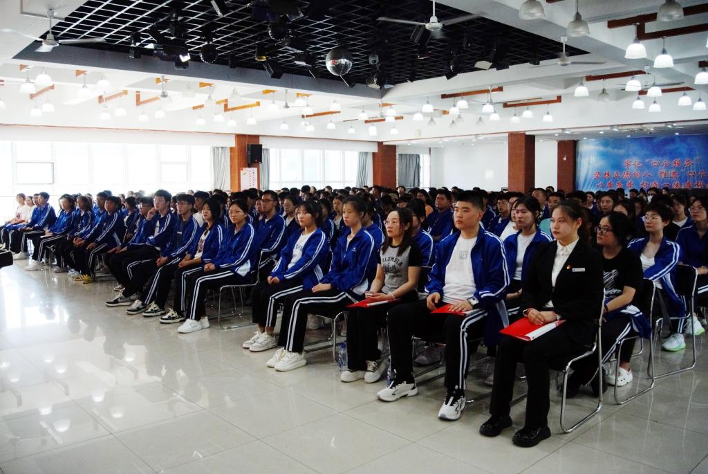 在庄严的国歌声中,开学典礼正式拉开帷幕。学院党委副书记张国华首先对2023级新生的到来表示热烈欢迎;教师代表王娜老师对新生提出了新期待,她希望同学们能积极利用大学时光充实自己,锻炼个人能力,度过一个丰富多彩的大学生活;学院学生会执行主席代郁璇作为在校生代表发言,她分享了自己的学习经历和感悟,并鼓励学弟学妹们要把学习作为首要任务,制定目标、寻找方向,迎接挑战和机遇;国贸23-1班米柯作为新生代表发言,他表示在今后的大学生活中,要独立思考,努力学习专业知识,锻炼过硬的本领,敢于接受磨练和洗礼,做一个自立自强、品学兼优的大学生,书写飞扬的青春;金融科技23-1班李文杰母亲作为家长代表发言,她希望刚刚步入大学校园的新同学们能够自立自强、端正思想、珍惜缘分、掌握学习方法,不辜负家长的殷切期望,树立正确的价值观;院长郭浩淼致辞,希望2023级新生能够培养自主学习能力,养成良好的生活习惯,勇敢地追逐梦想,收获璀璨的人生。最后,学院党委书记赵智博为新生寄语,希望同学们尽早制定学业生涯规划,养成良好学习和生活习惯,珍惜时光,不负韶华,"身居斗室,胸怀天下",以饱满的热情迎接挑战,在新的征程上,乘风破浪,拥抱彩虹!