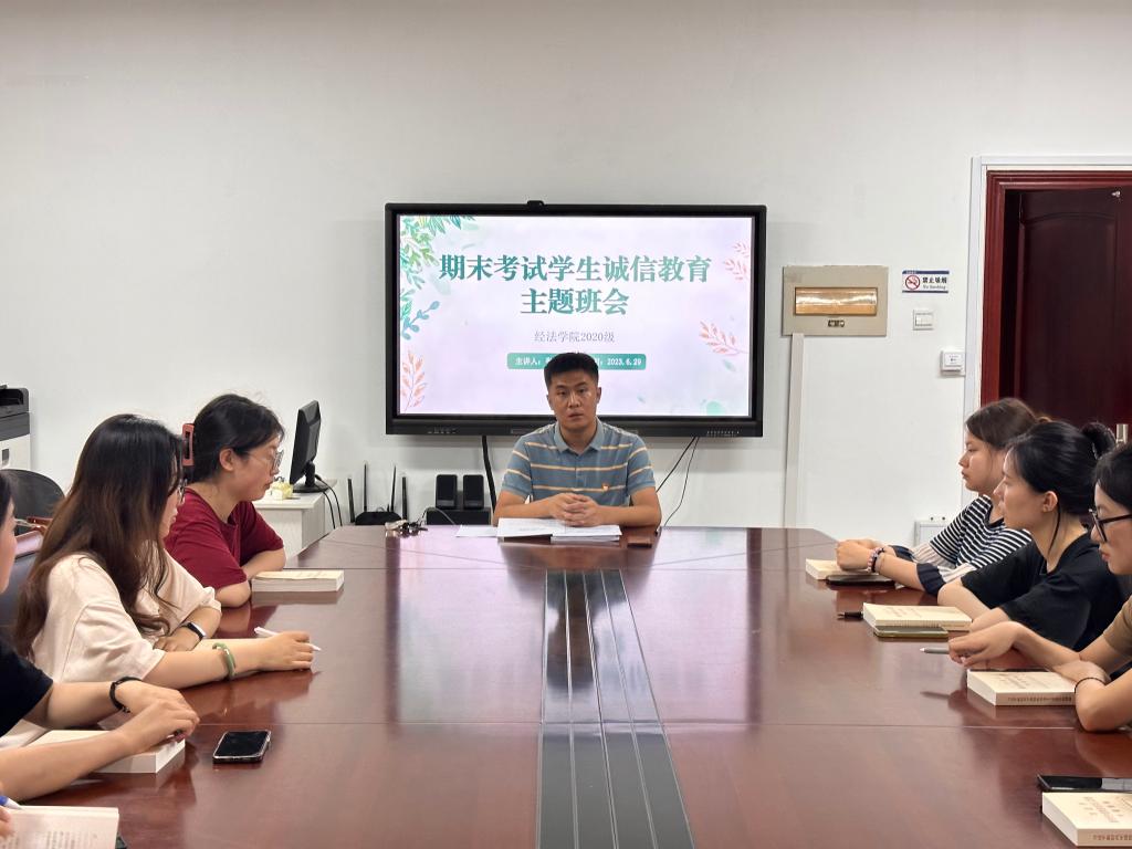 6月30日晚,经法学院20级辅导员张鹏飞、21级辅导员齐艳萍于博识楼A305分别召开20级和21级学生诚信考试主题班会。