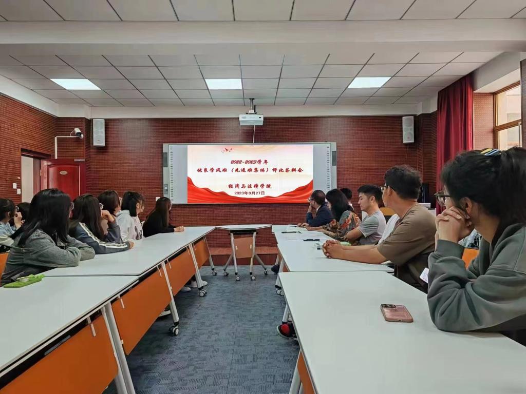 为了发挥榜样的带动作用,建设优良班风、院风,9月27日,经法学院于博识楼A305举办“2022-2023学年优良学风班(先进班集体)”评比答辩会。学院党委书记赵智博、党委副书记张国华、学办主任齐艳萍、团委副书记张鹏飞担任评委,23级学生代表参加。