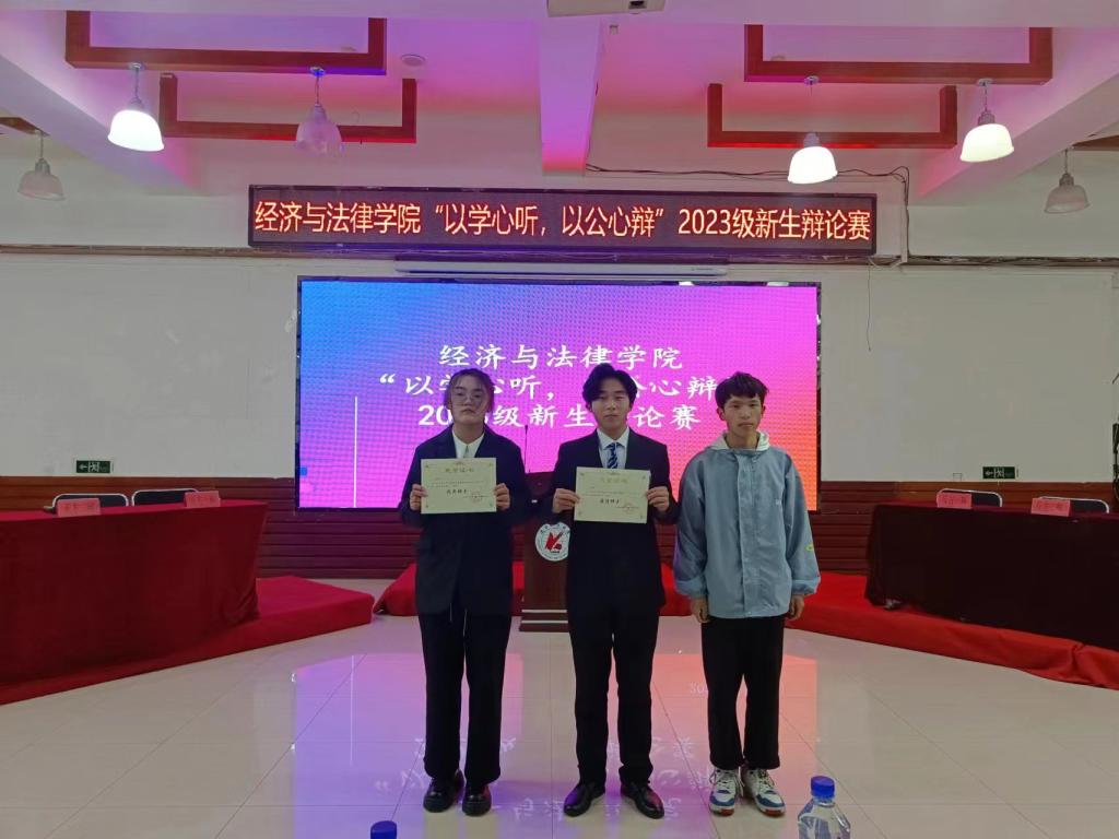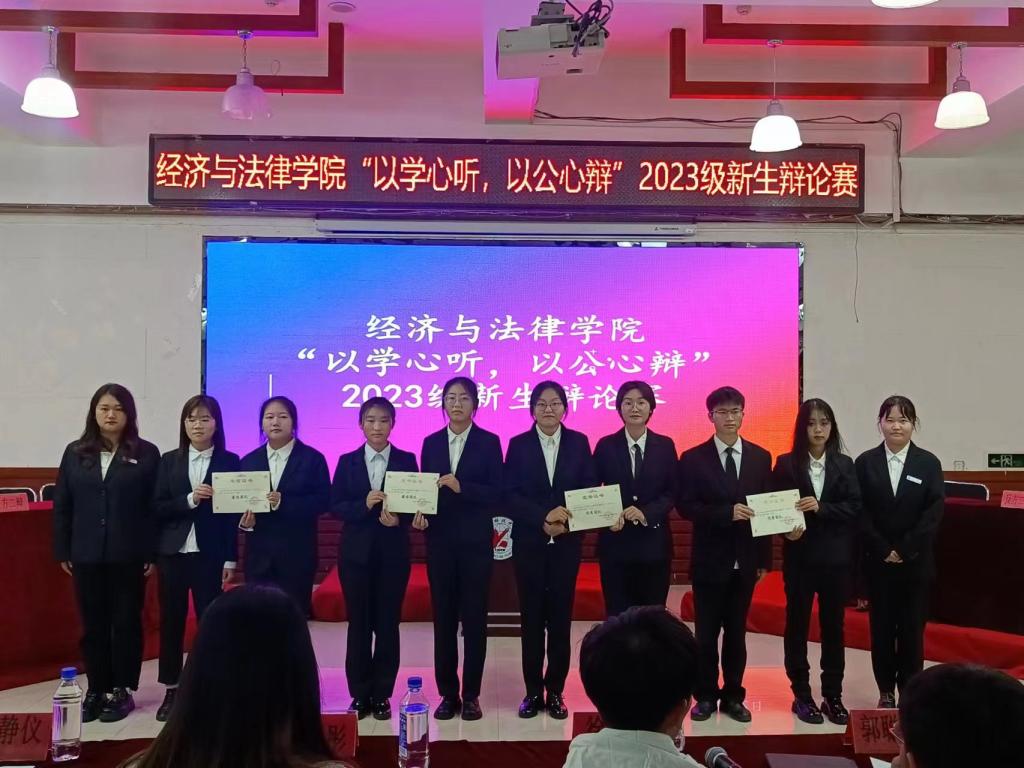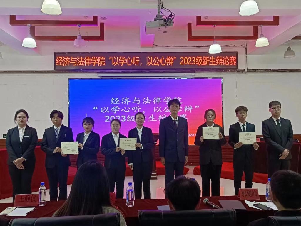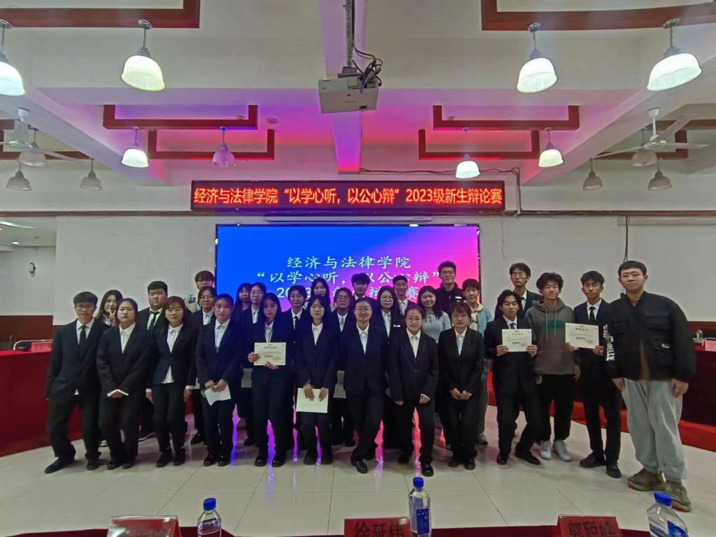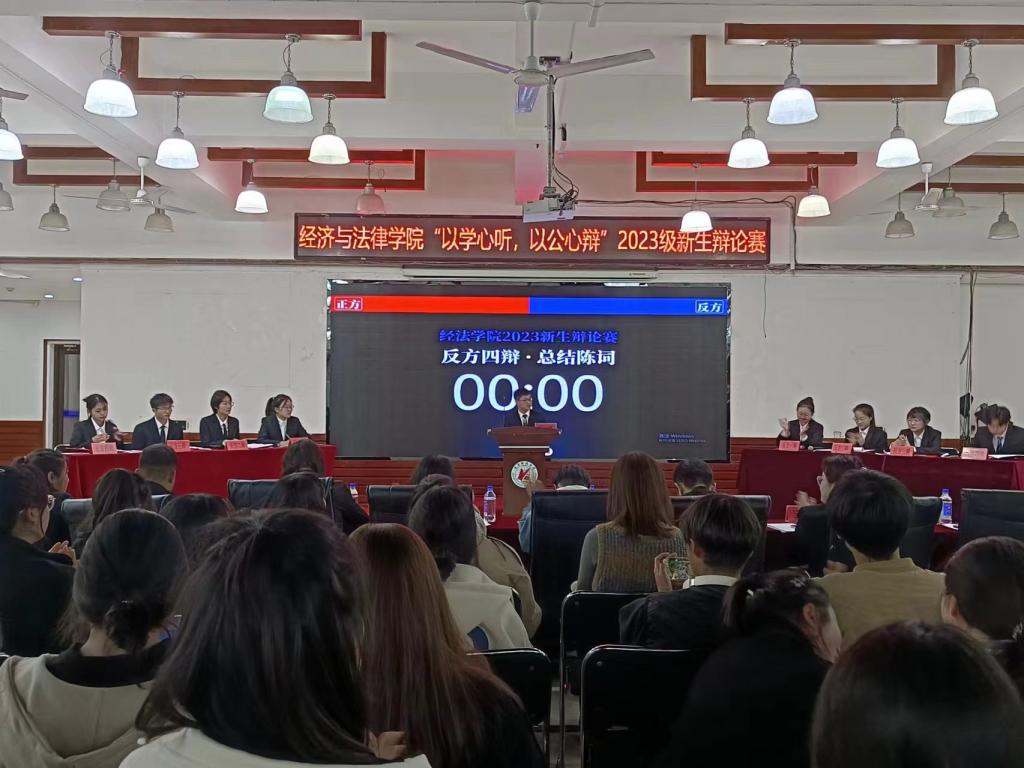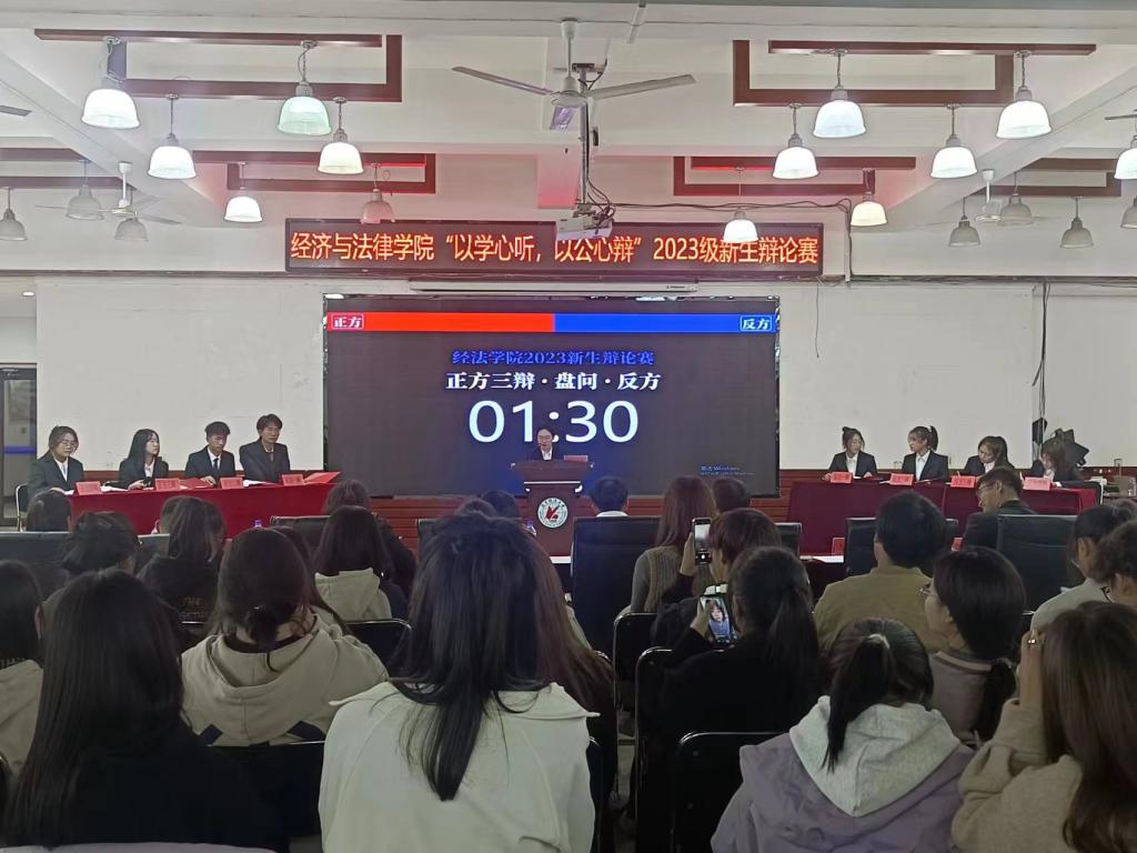 11月2日晚,经法学院于明德楼大学生活动中心举办“以学心听,以公心辩”主题辩论赛。本次辩论赛由金融23-2班白江悦主持,开元平台辩论队负责人、思辨社社长徐延伟、经法学院辩论队队长韩雨彤、副队长郭聪皓以及经法学院分团委副书记、学生会主席团成员和各部门负责人出席活动并担任评委,2023级全体学生参加本次活动。
