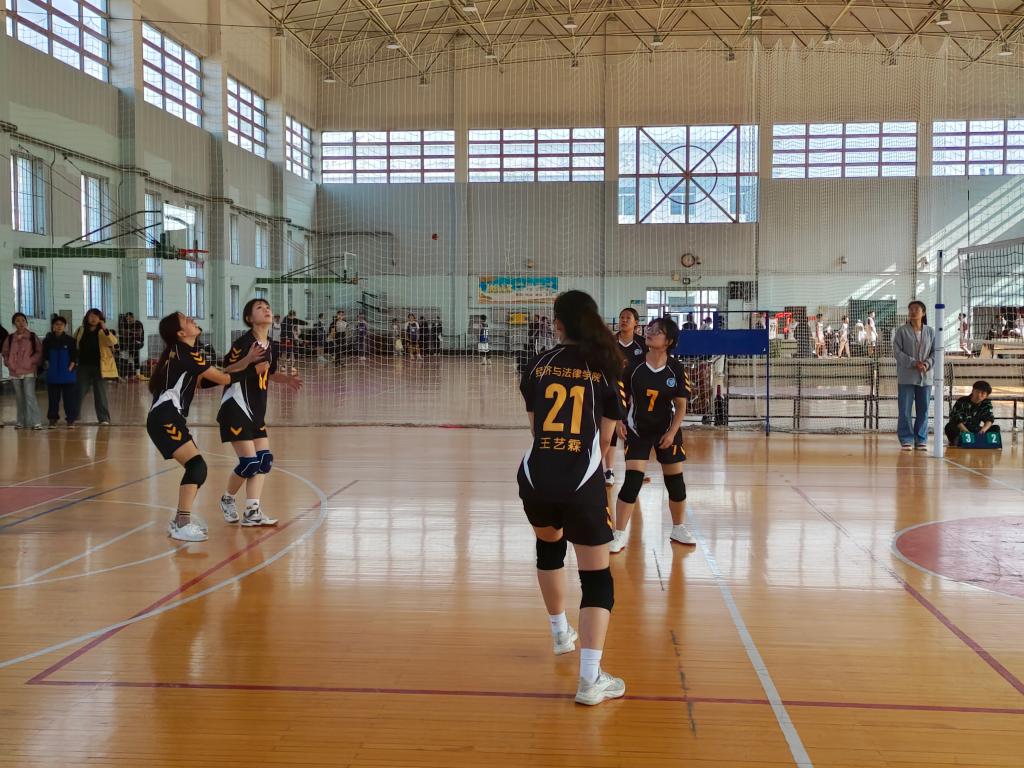 10月27日,在最后一场四强积分赛上,经法学院女排姑娘们在先丢一局的被动局面下没有因为第一轮比赛失利而气馁,她们稳住心态、沉着冷静地应对第二轮比赛。一声哨响,双方队员便开始了龙争虎斗,各施绝技,一个个精彩的扣球、拦网,双方队员都尽力发挥出个人优势,在战术上密切配合,拉开了令人窒息的持续赛,让在场观众欢呼不已。双方势均力敌,难分伯仲,对手方以微弱的优势领先,经法姑娘们临危不乱,配合默契,在老师的指导下力挽狂澜,在团队协作的力量下奋起直追将场面扭转!最终经法学院女排姑娘们连扳两局以总比分2:1赢得了本场比赛。