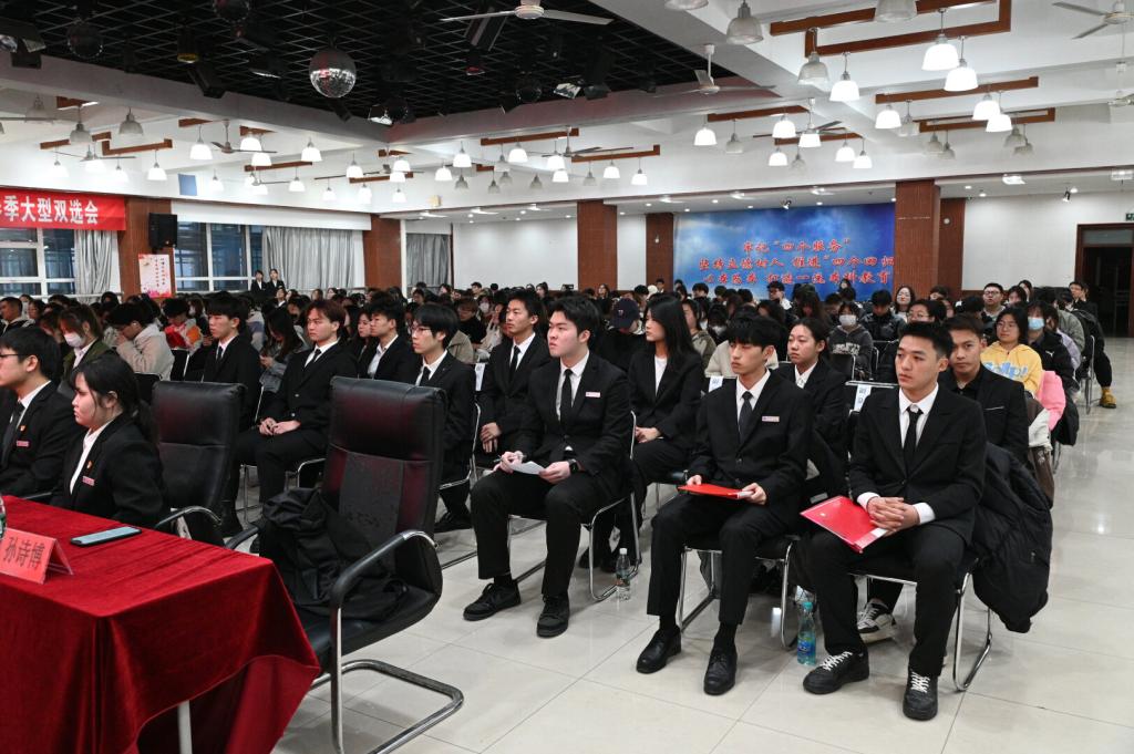 4月2日,经法学院于明德楼大学生活动中心召开运动会动员大会暨院队聘任仪式。本次大会由经法学院团委副书记张鹏飞主持,学院党委书记赵智博、党委副书记张国华、学办主任齐艳萍出席会议,学院各院队正、副队长、全体团学骨干以及2023级全体学生共计300余人参加会议。