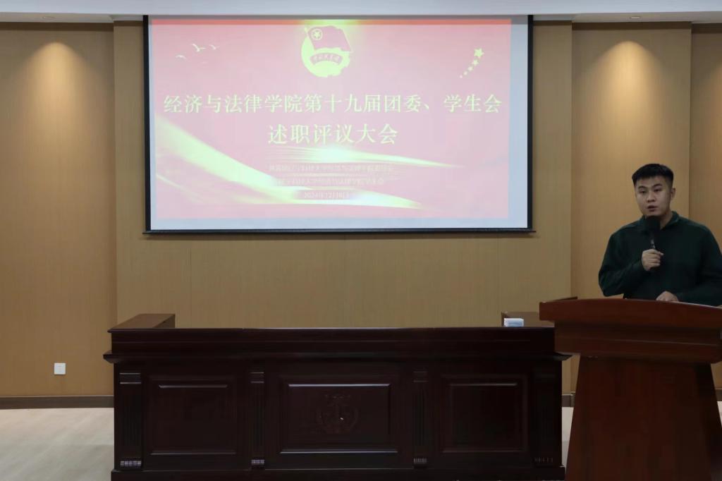 12月8日,经法学院于博识楼A402召开第十九届团委、学生会述职评议大会。本次会议由学院学生会执行主席兼办公室负责人赵心豪主持,学院团委副书记张鹏飞及全体团学骨干参加。