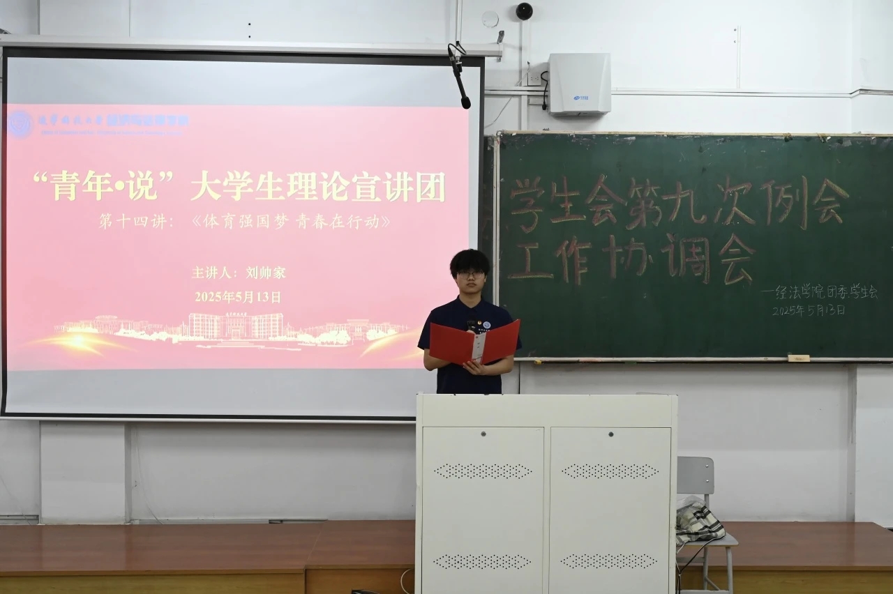 会议伊始,学院“青年·说”大学生理论宣讲团成员刘帅家带来题为《体育强国梦,青春在行动》的精彩宣讲。他从青年视角出发,阐述体育强国事业的重要意义,激发了在场运动员参与运动会、助力体育事业发展的热情与决心。