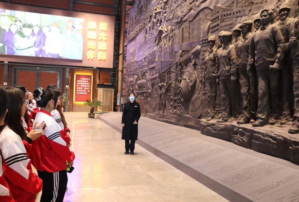 活动当日,师生共同参观鞍钢博物馆。博物馆讲解员从馆内的巨幅画雕讲起,依次向大家介绍“钢铁摇篮”“火红年代”等11个主题展区,她生动地讲述了鞍钢从建国前在艰难困苦中筚路蓝缕、艰苦创业,到逐步成长为国家钢铁工业坚实支柱的发展历程。同学们在参观过程中,全神贯注地凝视着每一件展品,仔细阅读着每一段文字说明。同学们从一件件带着岁月痕迹、略显斑驳的实物展品,到一幅幅珍贵无比的历史照片中,真切感受到了鞍钢人在不同历史时期所展现的艰苦奋斗、勇于创新的精神品质。
