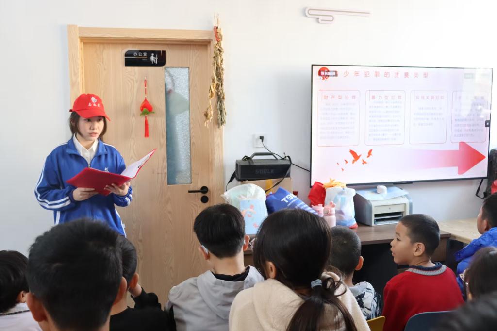 普法知识宣讲以预防青少年犯罪为切入点,通过引用最高检发布的数据,剖析财产、暴力、网络及涉毒等犯罪类型,提出了“三位一体”防护网建设建议,并结合法规案例,让孩子们意识到守法的重要性。此外,志愿者聚焦网络诈骗,通过生活场景、真实视频揭示骗术,分享防传销、诈骗、非法借贷的妙招和应急策略,帮助孩子们强化安全意识。此次普法如知识羽翼,助力孩子们逐梦远航。