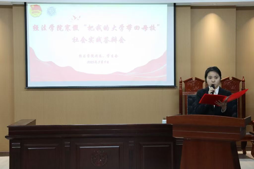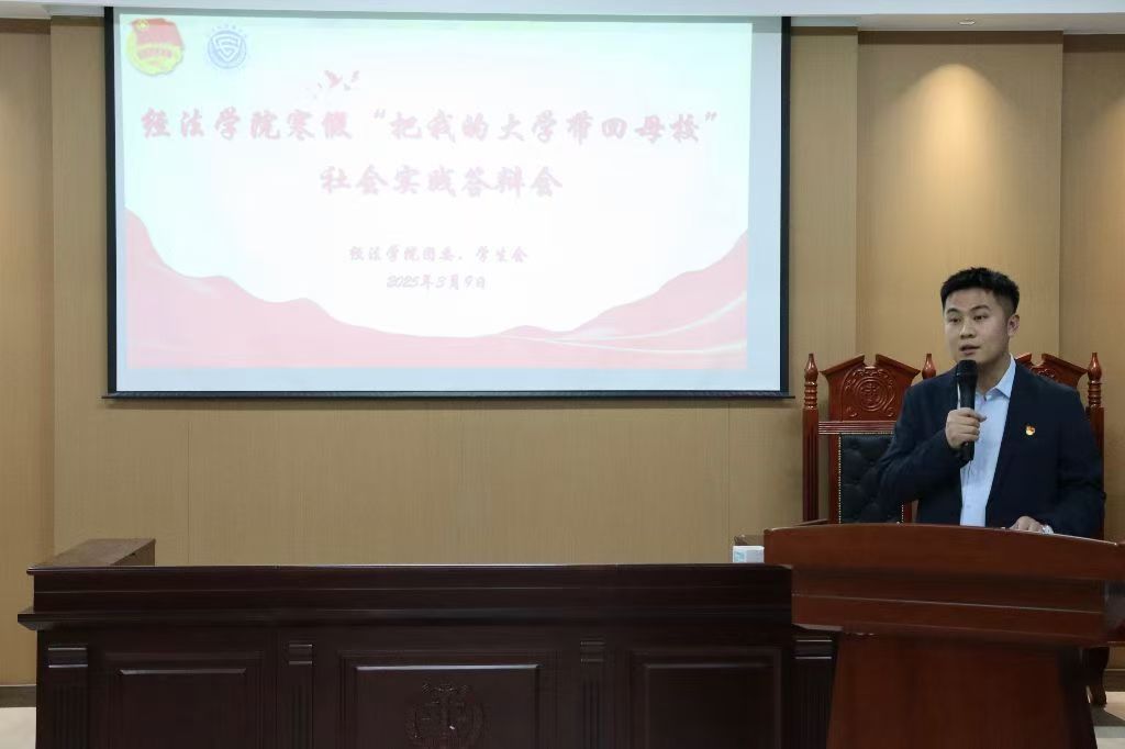 3月9日,经法学院于博识楼A402召开2025年寒假“把我的大学带回母校”社会实践答辩会。本次答辩会由学院团委副书记张鹏飞、团学骨干以及各班级团支书担任评委,共计22支队伍参加本次答辩会。