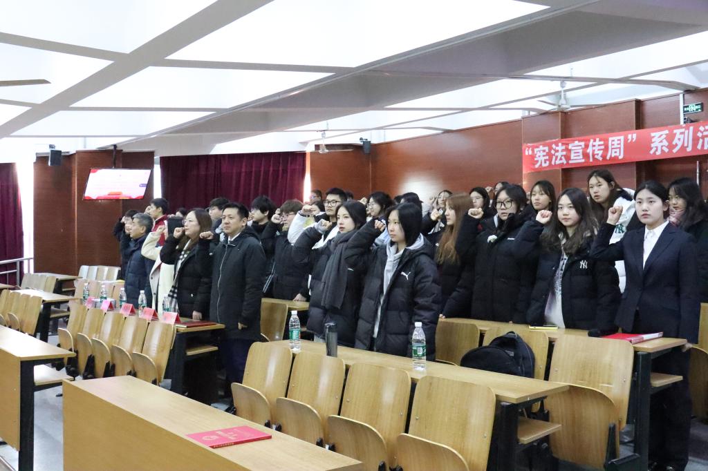 活动伊始,学生代表法学23班吴欣悦带领全体参会人员进行庄严的宪法宣誓。誓言声声,铿锵有力,彰显着青年学子对宪法的敬畏与尊崇。