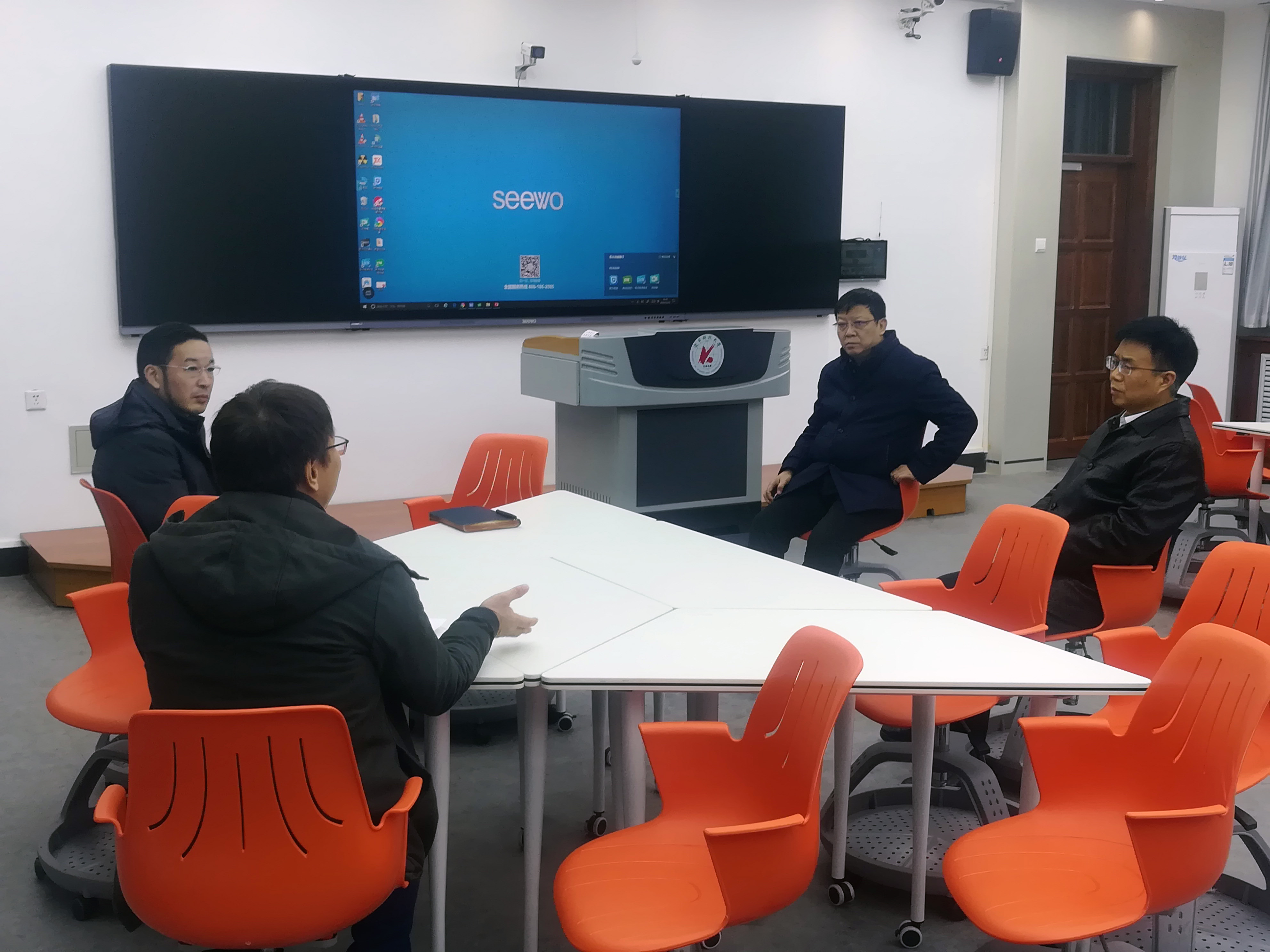 12月11日,开元平台党委书记李平、校长张志强在教务处负责同志陪同下来到博学楼新建成的智慧教室,听取了教务处同志对智慧教室的建设情况。