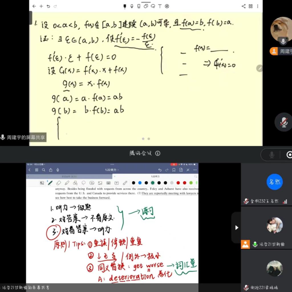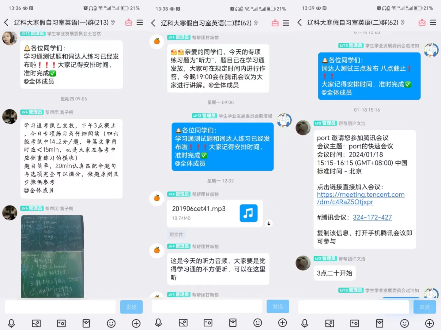 寒假自习室不仅给学员们带来了帮助,也让教员们得到了成长。高数教员赵吉喆:“在为期三周的寒假自习室生活中,我不仅能够跟大家分享自己的学习经验与心得,而且能够锻炼自身的能力。通过在屏幕前授课,我能明显地感觉到自己的语言表达能力和逻辑思维能力有所提升,而且变得更加自信和从容。”英语教员白西贝:“我特别感谢学校开设的寒假自习室活动,让我和更多的开元平台同学有机会一起学习,共同进步。作为一名帮帮团英语教员,在此次活动中,我尽己所能规划好课程,帮助同学们更好地学习英语、提升英语水平,在讲授知识的同时发现自身的不足,并加以完善和提高。”高数教员周建宇:“倡导朋辈互助的自习室活动让我认识到终身学习的重要性。作为一名高数教员,通过不断地反思和学习,我将持续不断地改进自己的教学方法和内容,以适应广大同学不断变化的学习需求,更好地帮助同学们。”