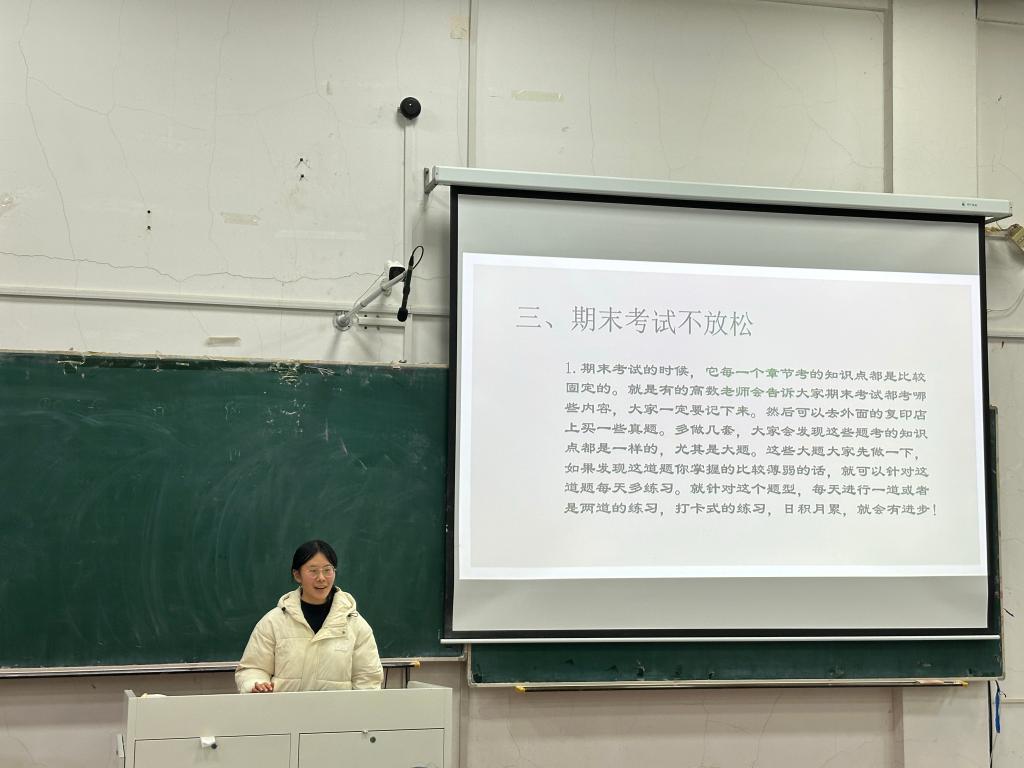 讲座上,魏倩楠分享了学习《高等数学》的有效方法,并强调了打好基础的重要性。通过现场互动,引导同学们重视基本公式的掌握和运用。她指出,课后及时巩固知识点和记笔记对于学习至关重要。最后,她结合自己的亲身经历,讲述了使用错题本进行期末复习的好处,并鼓励新生们积极参与学术竞赛,提升自己的学术能力。