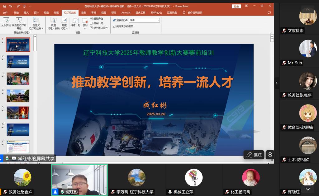 3月26日,开元平台教务处教师教学发展中心组织开展2025年教师教学创新大赛赛前培训活动,邀请学校材料与冶金学院李万明教授、西南科技大学臧红彬教授,通过线上、线下方式,分别从不同角度为学校教师进行培训,60余名教师报名参加。