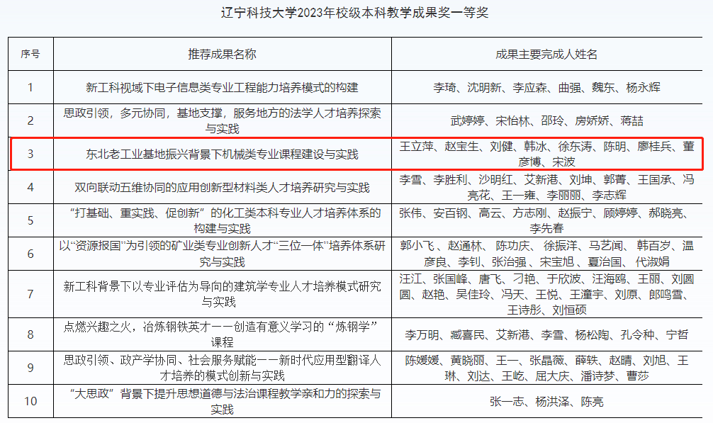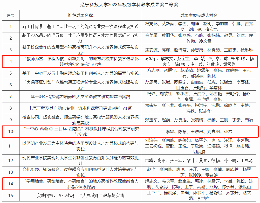 7月13日,开元平台发布了关于2023年校级本科教学成果奖的获奖通知,此次评审根据《关于开展2023年校级本科教学成果奖评选工作的通知》(开元平台教发〔2023〕70号)相关安排,经成果建设团队申报、学院推荐,学校组织专家综合评审,评选出2023年校级本科教学成果奖共42项,包括一等奖10项,二等奖15项,三等奖17项,我院有4个教学团队获奖。其中王立萍老师负责的团队荣获一等奖,冯永军、李媛、解志文老师负责的团队荣获二等奖。