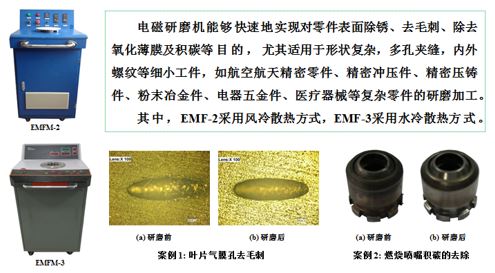 研制的磁性磨料有10种类型以上,可以适用不同的材料和加工精度要求,粒径大小在20μm-1000μm范围内。兼具磁性和研磨性,且研磨性能良好,使用寿命长。可适用于玻璃、轻质合金、铸铁、铜铝合金、高碳钢、合金钢和轴承钢系列材料。