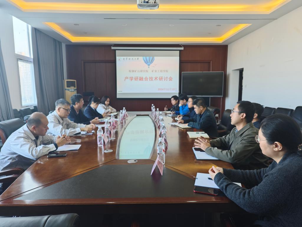 双方围绕“推进产学研深度融合,促进科技成果移植转化”主题进行了充分交流,参观了学院实验室,在金属矿山资源绿色开发利用联合实验室建设形成了共识,达成了实验室共享方面的意向,并鉴定了“联合实验及化验平台共建框架协议”。双方还针对科研项目“爆堆精细评价与矿岩边界控制高效铲装技术研究”课题开展了讨论,提出了科研计划的具体要求。