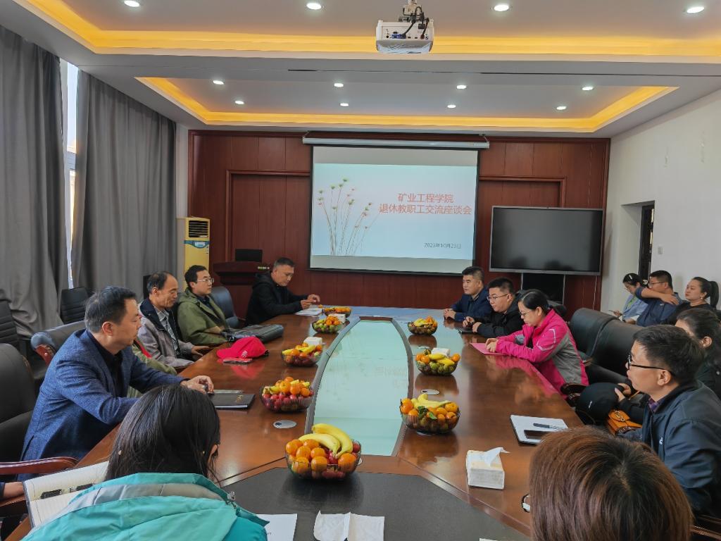 10月23日下午,恰逢重阳佳节之际,矿业工程学院召开退休教师座谈会,欢送姜效军、常来山两位教师光荣退休,学院领导班子、全体青年教师参加。