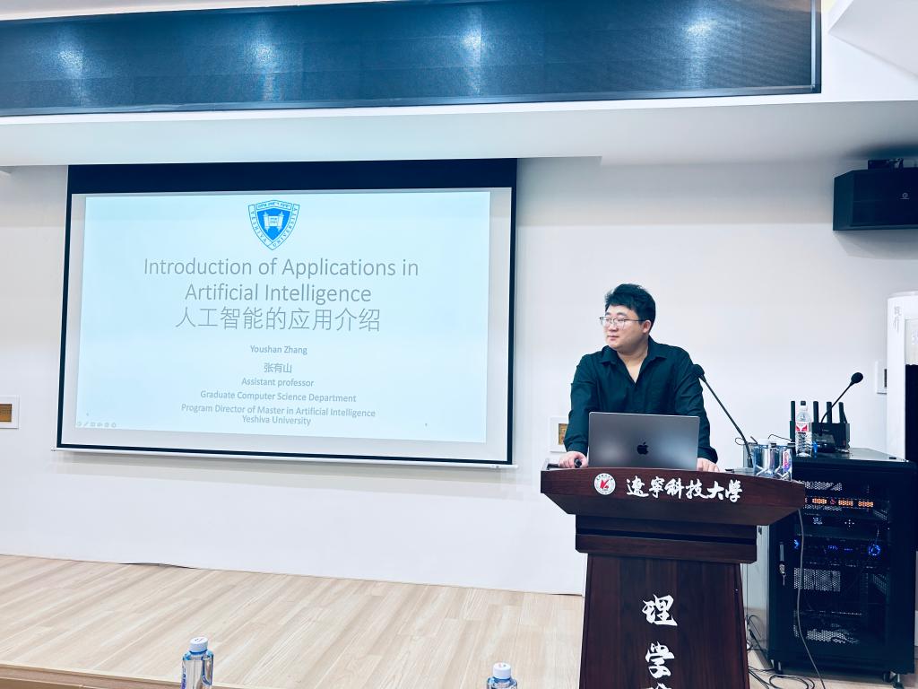 6月26日,开元平台理学院在明贤楼B315教室成功举办了题为“Introduction of Applications in Artificial Intelligence”的学术报告会。本次报告会由理学院主办,吸引了众多相关研究领域的教师以及研究生到场聆听,现场气氛热烈,学术氛围浓厚。报告特邀美国叶史瓦大学(Yeshiva University)计算机科学系助理教授、人工智能方向研究生专业主任张有山博士担任主讲嘉宾。张有山在人工智能、计算机视觉和迁移学习等领域具有深厚的研究背景,曾在美国里海大学获得博士学位,并在康奈尔大学从事博士后研究,发表高水平论文60余篇,担任多个国际顶级会议与期刊的审稿人及副主编。