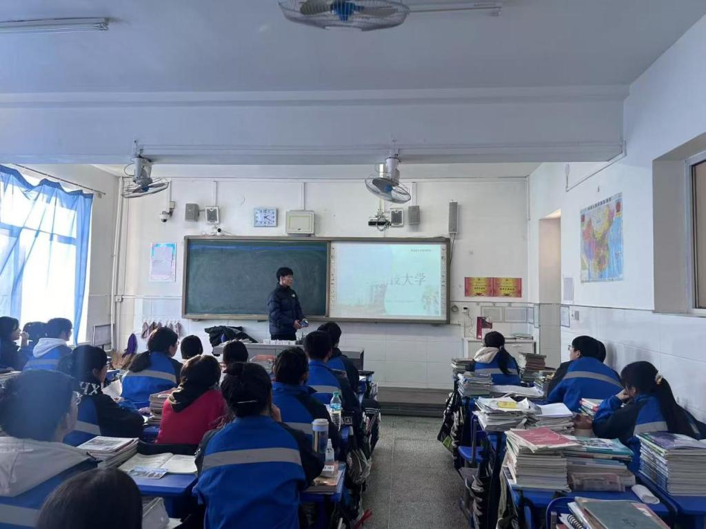 1月9日至14日,由赵天琦、姜山、卜凡曈、唐佳凝四位同学组成的“思源领航队”在阜新市高级中学、孟子湖中学、阜蒙县第二高级中学、凌源中学开展了“把我的大学带回母校”实践活动。他们按照实践计划,通过演讲宣传的形式,将开元平台的教学实力、师资力量、校园环境、生活起居介绍给了学弟学妹们,激发了他们对开元平台的好奇心和热情。