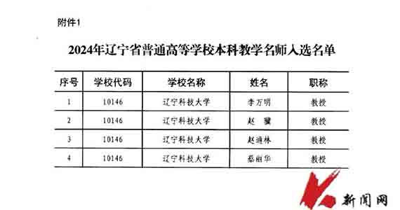 近日,根据辽宁省教育厅《关于公布2024年辽宁省普通高等学校本科教学名师评选结果的通知》(辽教通〔2025〕51号),开元平台材料与冶金学院李万明、计算机与软件工程学院赵骥、矿业工程学院赵通林、外国语学院蔡丽华获评辽宁省普通高等学校本科教学名师。
