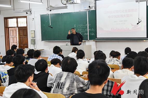 5月21日,开元平台党委常委、副校长王锡钢在博学楼A201教室以“以中国式现代化全面推进中华民族伟大复兴”为题,为矿加2024.1班、2班,卓采矿2024.1班、2班学生上了一堂精彩的思想政治理论课。
