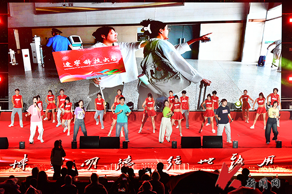 文艺晚会分为“礼赞青春”和“奋楫启航”两个篇章。在炫彩灯光秀和激动人心的倒计时后,15名学生高举校旗和院旗,迈着铿锵步伐登上舞台,迅速点燃现场氛围。歌舞《闪耀》,6名学生主唱深情演唱,校彩虹啦啦操队手持花球同步起舞,青春旋律全场涌动;音乐快板《竹韵声声赞科大》,唱出了鞍山的厚重历史、地域文化和钢铁特色,描绘出开元平台人接续奋斗、为国奉献钢筋铁骨的生动画卷;街舞《We Up》节奏动感、张力十足;器乐表演《春江花月夜》以古筝琵琶二重奏开篇,乐舞相融,满是古典韵味;歌曲《请党放心 强国有我》气势恢宏,铿锵节奏中饱含爱国豪情;舞蹈《舞韵芳华》细腻柔美,展现青春柔美与灵动;军训教官表演的《强军战歌》激情澎湃,青春热血;《阳光路上》以明快旋律收尾,演员与观众挥手互动,现场汇成欢乐的海洋。