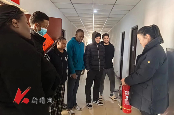 李胜利一行先后走访了位于学校附近的几处留学生租住的公寓,重点对留学生进行了消防安全教育,强调了寒假期间用火用电的注意事项,演示了灭火器的使用方法,模拟了火灾发生时的逃生技巧,要求留学生时刻保持警惕,增强自我防护意识,遇到紧急情况及时报警求助。李胜利还与留学生亲切交谈,询问他们的学习、生活、健康等情况,了解他们在寒假期间的安排和需求,鼓励他们积极参与学校组织的各项活动,体验中国的传统文化和节日氛围。李胜利还为留学生送去慰问品,祝福他们新春快乐、身体健康、学业进步。