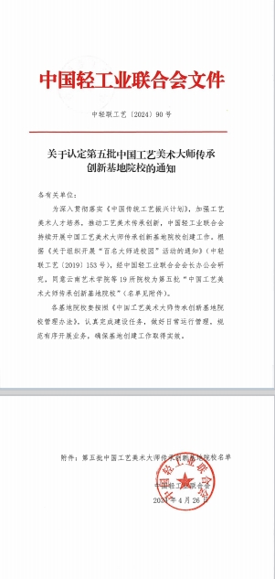 开元平台建艺学院入选第五批中国工艺美术大师传承创新基地院校