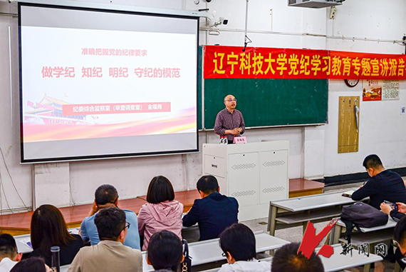 机械工程与自动化学院、工商管理学院、应用技术学院、理学院全体教工党员共同听取了学校党纪学习教育宣讲团成员、马克思主义学院副院长陈烨作的题为《为奋进新征程提供坚强纪律保障》的主题宣讲。