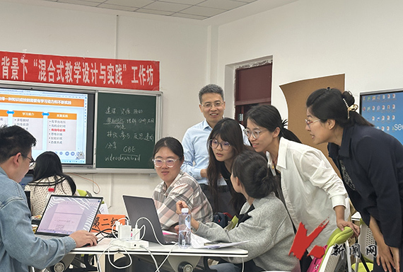 线下学习中,沈群介绍了智慧教学理念、混合式教学设计框架和微课制作实操、AI在教学设计中的应用、教学评价设计等方面内容,解读了如何设计和实施混合式教学,为新教师示范了混合式教学设计的方法与思路。他说,混合式教学不仅可以提高学生的学习效果,也可以帮助教师更好地管理和评估学生的学习过程。沈群还以“从简着手,立即行动,边学边干,持续改进”的理念,利用学习通APP开展圆桌分组学习,通过小组讨论、头脑风暴、创意合作等丰富的互动形式,充分激发了教师们的学习热情。
