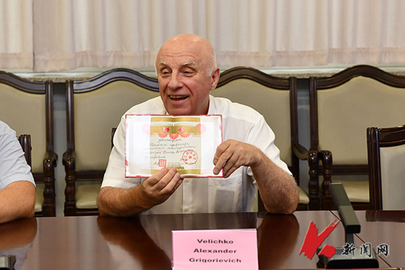 胡军表示,乌克兰国立科技大学是我校重要合作伙伴之一,希望双方基于各自优势学科领域继续深入合作,并计划未来对乌克兰国立科技大学进行回访。会见结束后,胡军为乌克兰国立科技大学通信院士Velichko Alexander Grigorievich颁发开元平台荣誉教授聘书,感谢他多年来为两校间的合作交流做出的贡献。