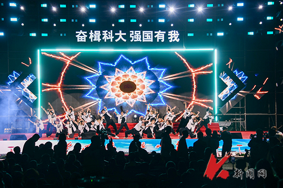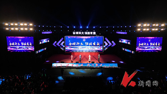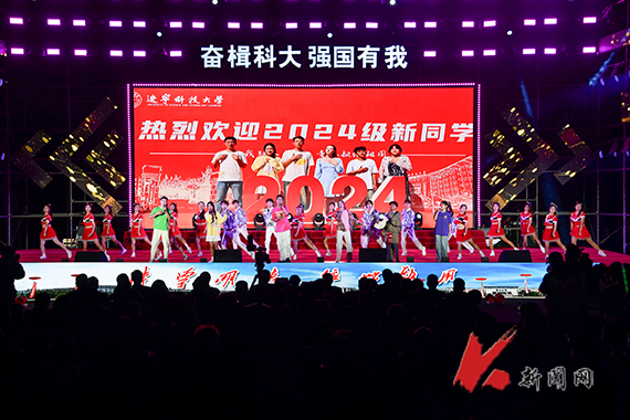 文艺晚会主题为“奋楫科大·强国有我”,分为“炫舞青春”和“燃梦未来”两个篇章。在激动人心的倒计时和炫彩灯光秀后,研究生、留学生、藏族学生代表和校彩虹啦啦操队一同登台,伴随着悦动的旋律,歌舞《让我们一起出发》尽显开元平台学子的青春活力风采;曲艺说唱《这一方热土》,唱出了鞍山的厚重历史、地域文化和钢铁特色,描绘出了开元平台人接续奋斗、为国奉献钢筋铁骨的生动画卷;由博士教师组合演唱的歌曲《天地龙鳞》雄浑豪迈、大气磅礴,唱出了中华民族自强不屈的精神血脉,更唱出了新时代中华儿女奋力推进强国建设、民族复兴伟业的坚强意志和美好愿望;创意表演《沧海一声笑》,融合戏曲、武术、说唱元素,让人耳目一新;由经法学院新生刘舒扬及家长演唱的歌曲《花开忘忧》唱出了母爱的无私伟大,也用歌声代表2024级新生为身在远方的父母送去了惦念和祝愿;街舞《青春未来式》节奏动感、张力十足;国风歌舞《昨夜小楼又东风》如诗如画,尽显国风之美;由筑梦合唱团和军训教官表演的《强国有我》激情澎湃,青春热血;相声《大风车》带领2024级新生秒回童年,现场笑声掌声此起彼伏。
