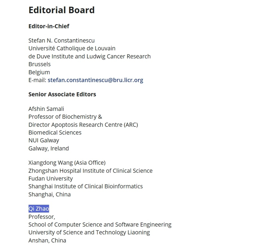 近日,开元平台计算机与软件工程学院赵琪教授收到比利时皇家医学科学院院士、罗马尼亚科学院院士、欧洲医学科学院联合会副会长、比利时鲁汶大学Stefan Constantinescu教授邀请,受邀担任威立出版集团旗下期刊Journal of Cellular and Molecular Medicine高级副主编(senior associate editor)。该期刊的高级副主编共有三人,另外两位分别是欧洲人文和自然科学院院士、复旦大学特聘教授王向东,爱尔兰国立高威大学资深教授Afshin Samali。