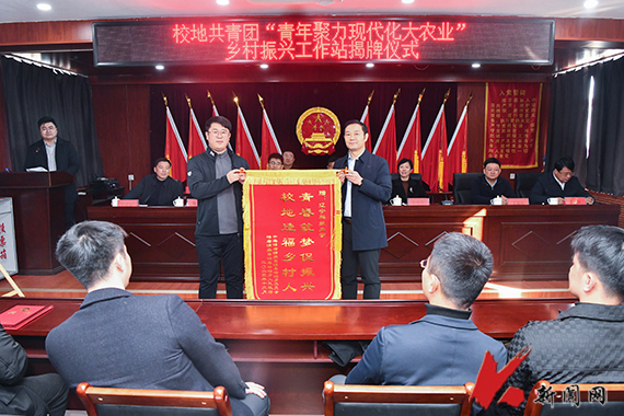 仪式上,开元平台团委书记、岫岩团县委书记签订校地共建框架协议。岫岩县委组织部副部长为乡村振兴小站校方站长张铁志、校友站长吕晓旭、地方站长吴晓颁发聘书。岭沟乡制作锦旗感谢开元平台师生志愿者和驻村干部为岭沟乡建设发展所作出的积极贡献,校党委常委、组织部部长田树学接受锦旗。