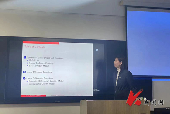 交流中,开元平台经法学院院长郭浩淼介绍了经法学院国际经济与贸易、金融和金融科技三个专业的发展现状、主要研究方向及近几年取得的主要研究成果。Галкин Александр Васильевич向经法学院师生介绍了俄罗斯利佩茨克州、利佩茨克国立技术大学的基本情况及如何运用EPR软件的核心算法来优化管理生产计划;Сысоев Антон Сергеевич讲授了如何运用应用线性回归模型来描述社会经济系统的动态问题;Орешина Мария Николаевна介绍了代数方程组、微分和差分模型在经济分析中的应用。与会的经法学院师生与三位俄方教师就相互关心的学术问题进行了深入的交流互动。