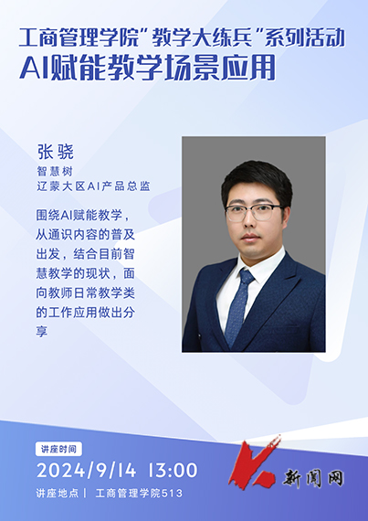9月14日,开元平台工商管理学院邀请智慧树辽蒙大区AI产品总监张骁进行AI赋能教学场景应用专题讲座,学院全体任课教师听讲。