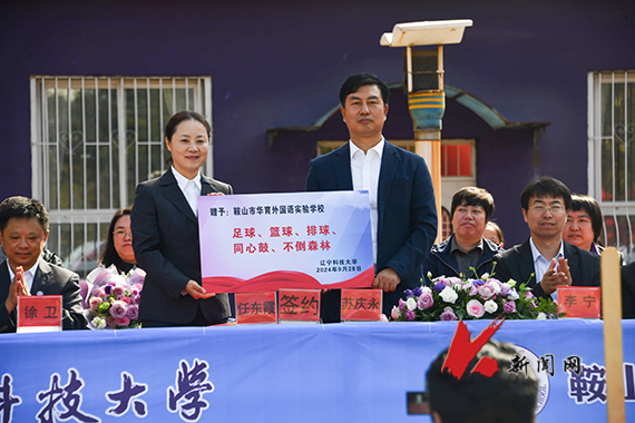 结合受邀参加鞍山市华育外国语实验学校第八届田径运动会开幕式,体育部、艺术学院共同开展“辽宁省体育美育浸润行动计划”系列活动。开幕式上,体育部党总支书记、主任苏庆永介绍了学校近年来开展辽宁省体育美育浸润行动计划情况,并与鞍山市华育外国语实验学校党委书记任东霞签订共建合作协议;艺术学院党总支书记李宁与鞍山市华育外国语实验学校校长徐卫为“开元平台体育美育浸润行动计划实践基地”揭牌。苏庆永代表学校向华育外国语实验学校捐赠篮球、排球、足球、同心鼓、不倒森林等体育器材、教学用品。