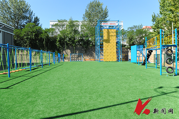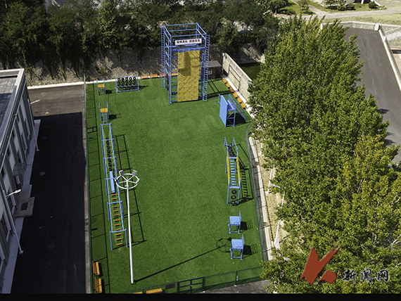 素质拓展基地占地1700㎡,实行封闭管理,必须在专职教师(教练)的指导与保护之下进行四面体、毕业墙、飞夺泸定桥、轮胎破、荡木组合、背摔台、模拟电网等项目练习。