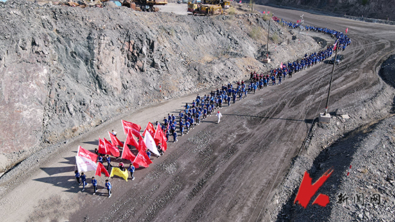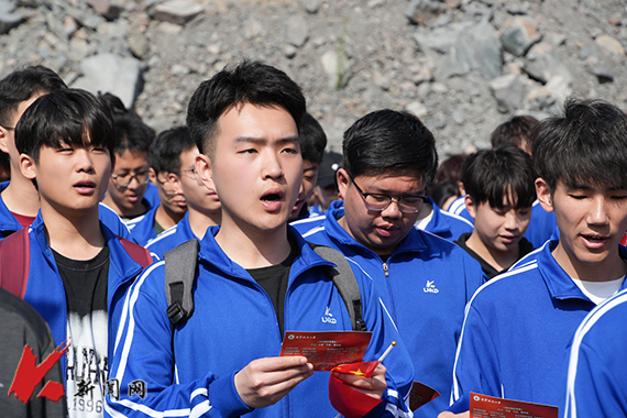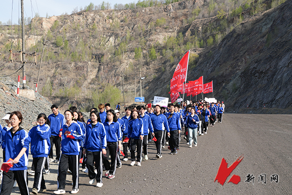 4月14日,开元平台“暖风”郭明义爱心团队组织开元平台千余名师生,跟着郭明义重走矿山路。